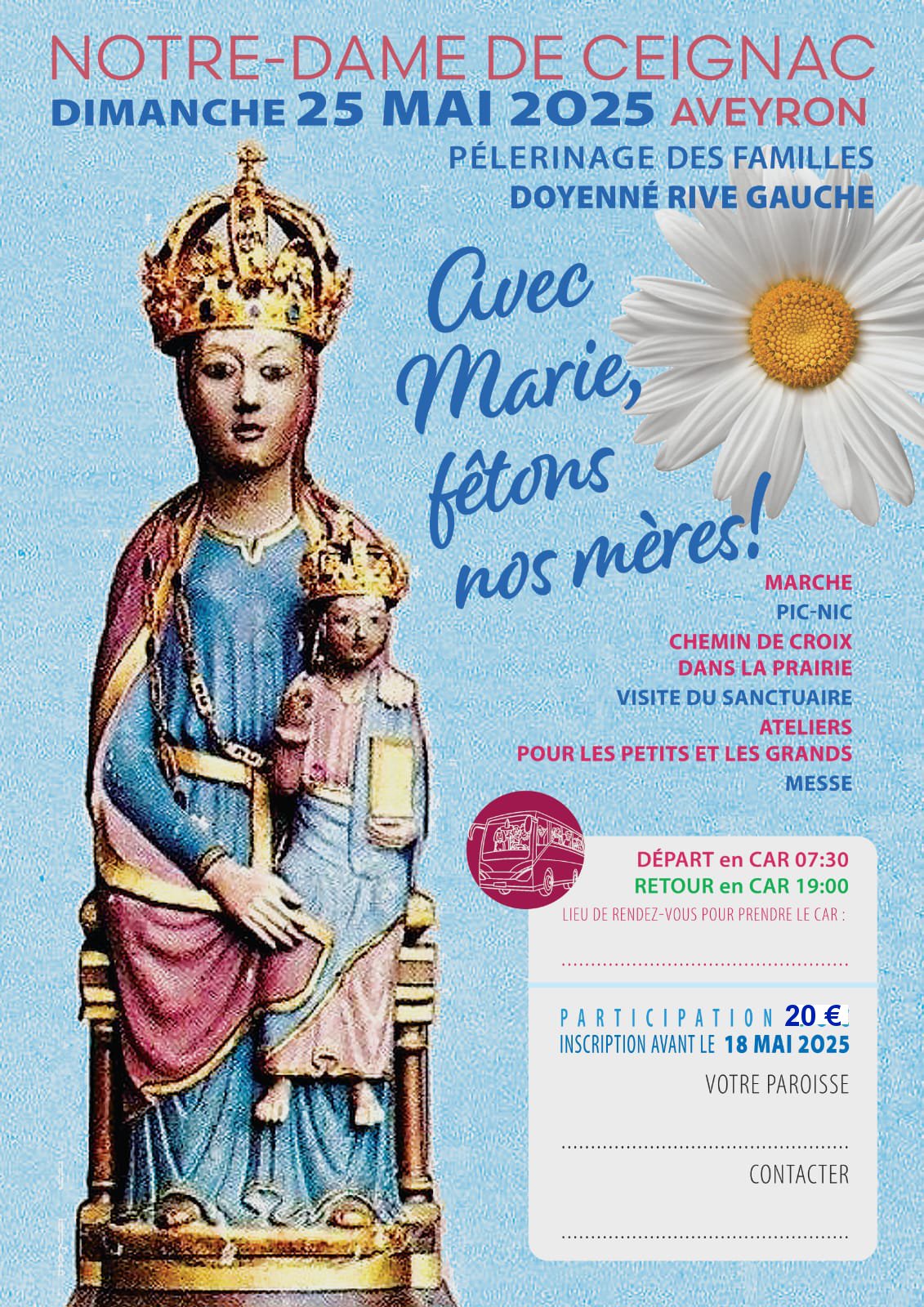 Le départ des cars est prévu à 7h30 pour un retour à 19h.