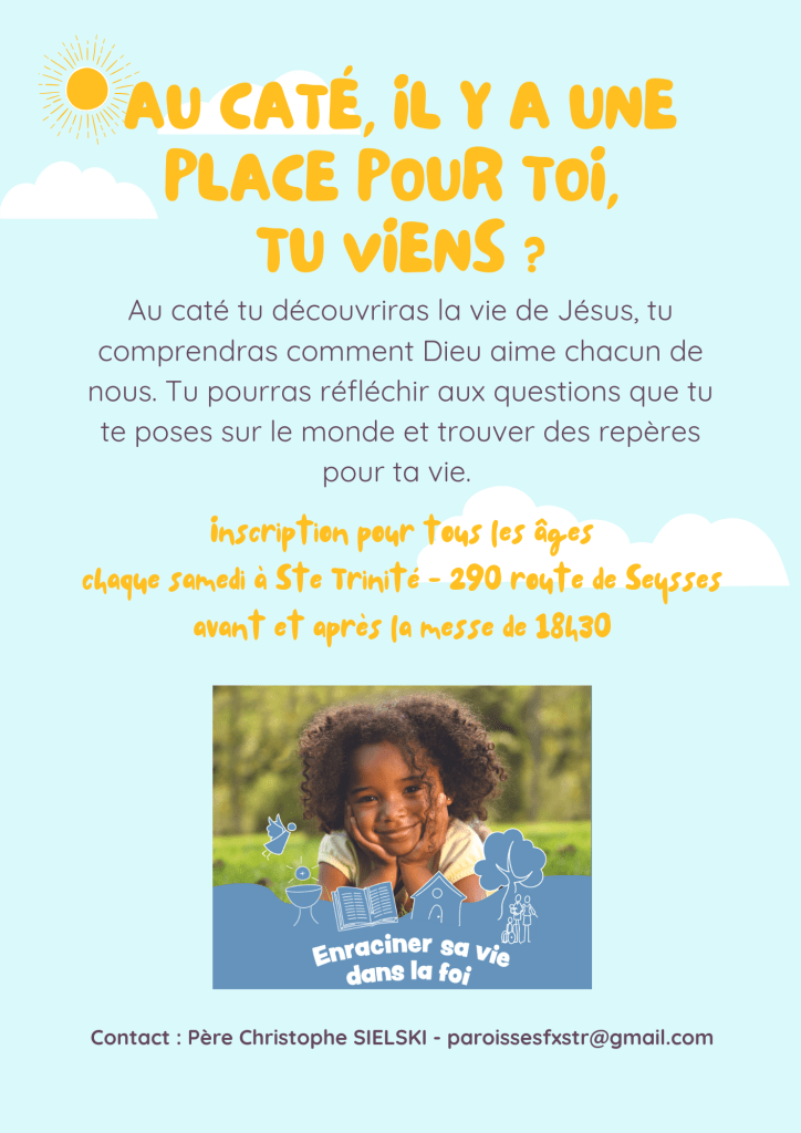Il n’est jamais trop tard pour s’inscrire : vous pouvez encore nous contacter chaque samedi avant et après la messe de 18h30 à la Sainte Trinité.