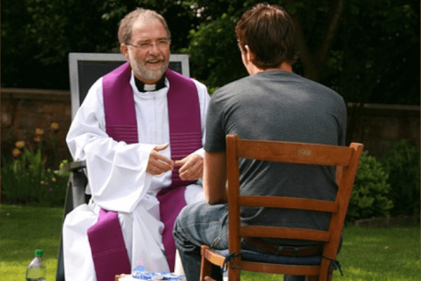 Le prêtre prononce la formule d’absolution et invite le pénitent à repartir dans la paix.